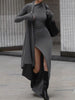 Unique knitted long sleeve sexy slit slim Maxi Dress