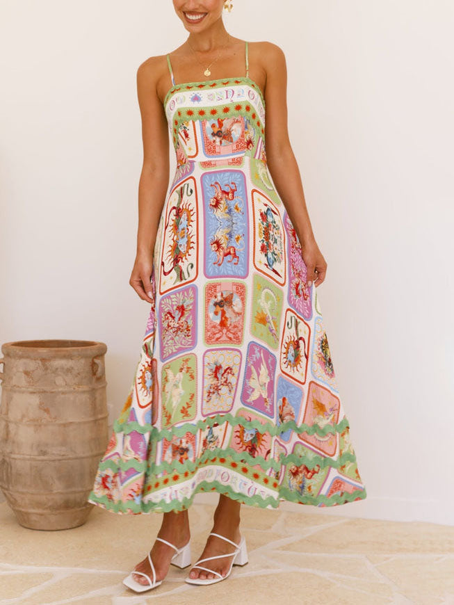 Make every holiday moment special with our unique painted print sleeveless lace maxi dress. Featuring a vibrant print, elegant lace detailing and a flowing silhouette, this dress is perfect for vacations, beach getaways and summer celebrations.