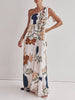 Unique Print One Shoulder Tie-up Pocketed Loose Maxi Dress