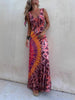 Unique Summer Placement Print Sleeveless Back-Tie Maxi Dress