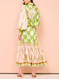 Unique Vintage Floral Lapel Single Breasted Midi Dress