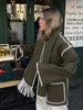 Aurohaya Women's Wool Felt Coat with Fringe Scarf Collar and Button Closure Elegant Casual Jacket