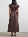 Classic Linen Blend Short Sleeve Fitted Waist Maxi Dress