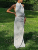Elegant Halterneck Black Polka Dot White Maxi Dress