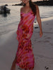 Elegant Printed Strappy Bodycon Silhouette Backless Slit Dress