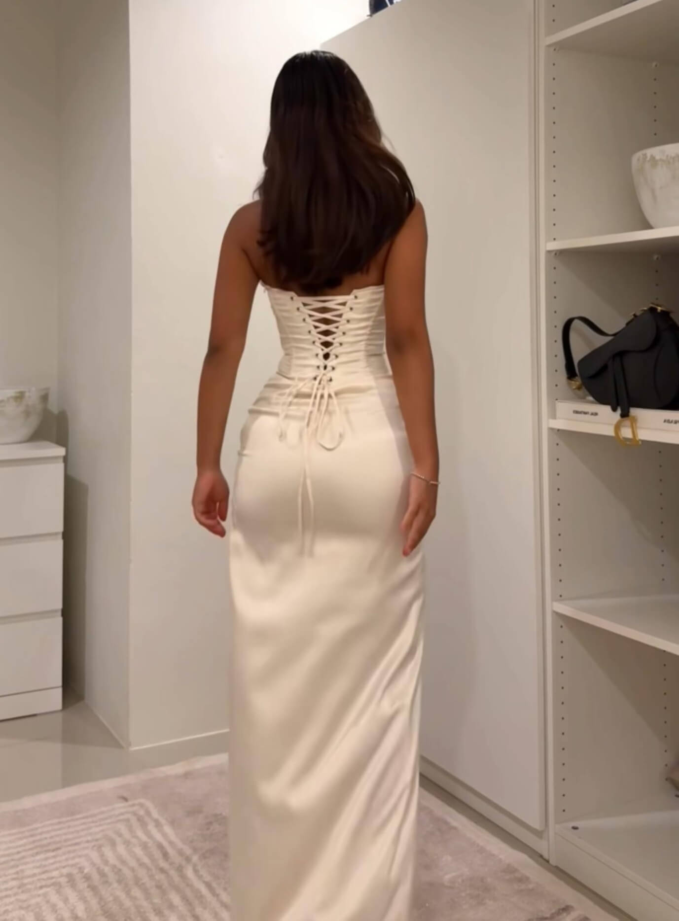 Clotilde Elegant Twist Satin Slit Dress designed to highlight feminine curves with effortless sophistication. Crafted from smooth, lightweight satin, this satin slit dress features a strapless neckline and a flattering twist detail at the waist that enhances the silhouette while creating a refined, elegant look.