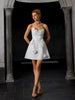 Designed with a structured strapless sweetheart neckline, this women’s mini evening dress enhances the neckline while providing a flattering, secure fit. The fitted bodice transitions into a softly flared A-line skirt, creating balanced proportions that elongate the legs and highlight natural curves.