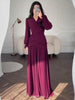 Chiffon Long Sleeve V-Neck Wrap Ruched Waist Maxi Dress