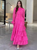 Chiffon Tie-Neck Long-Sleeve Ruffle Maxi Dress