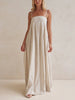 Effortlessly feminine with a modern twist, the Delicate Striped Patchwork Ruched Casual Cami Maxi Dress blends relaxed charm with refined detail.