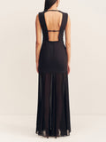 Elegance meets effortlessness in this draped maxi dress, with a fluid silhouette and flattering open back that perfectly blends sophistication with casual glamour.