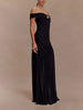 Graceful, feminine, and effortlessly refined — this strapless bodycon dress is designed to celebrate your silhouette. Featuring a sleek off-the-shoulder neckline and delicate floral appliqué accents, it flatters with a sculpted fit that enhances your natural curves.