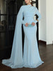 Elegant Satin Pleated Long-sleeved Maxi Dress