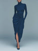 Elegant Turtleneck Draped Side Slit Midi Dress