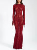 Exquisite Leopard Velvet Mesh Halter Maxi Dress