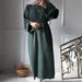 Knitted Round Neck Hooded Bubble Sleeves Sweater Dress