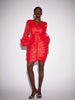 Aurohaya Mauricette Ruched V Neck Long Sleeve Mini Dress Crimson Flame