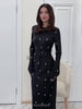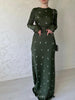 Satin Floral Round Neck Long Sleeve A-line Maxi Dress