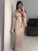 • Long sleeves with subtle slit detail for graceful movement