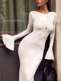 Sexy Backless Trumpet Sleeve Fishtail Maxi Dress