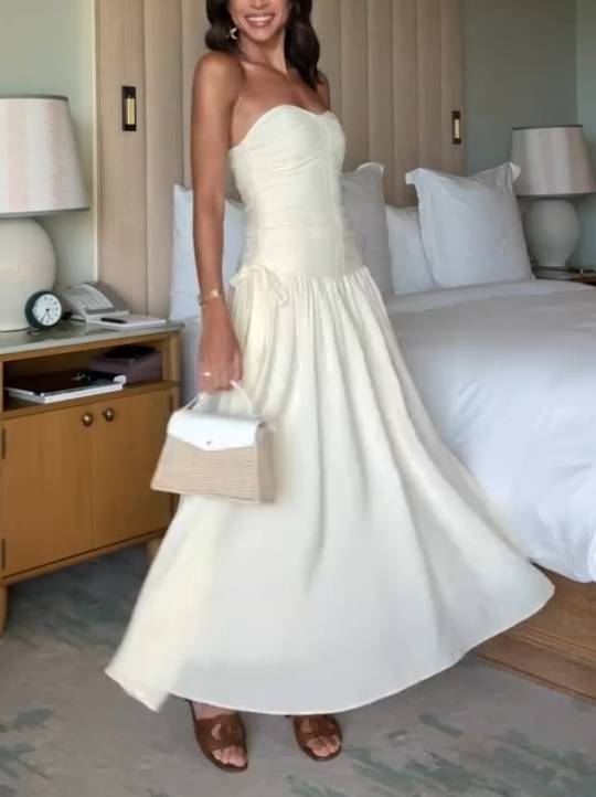 The pleated design of the tube top shows your perfect shoulder curve, elegant and sexy.