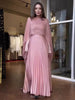 Waist-Cinching Long-Sleeve Pleated Maxi Cape Dress