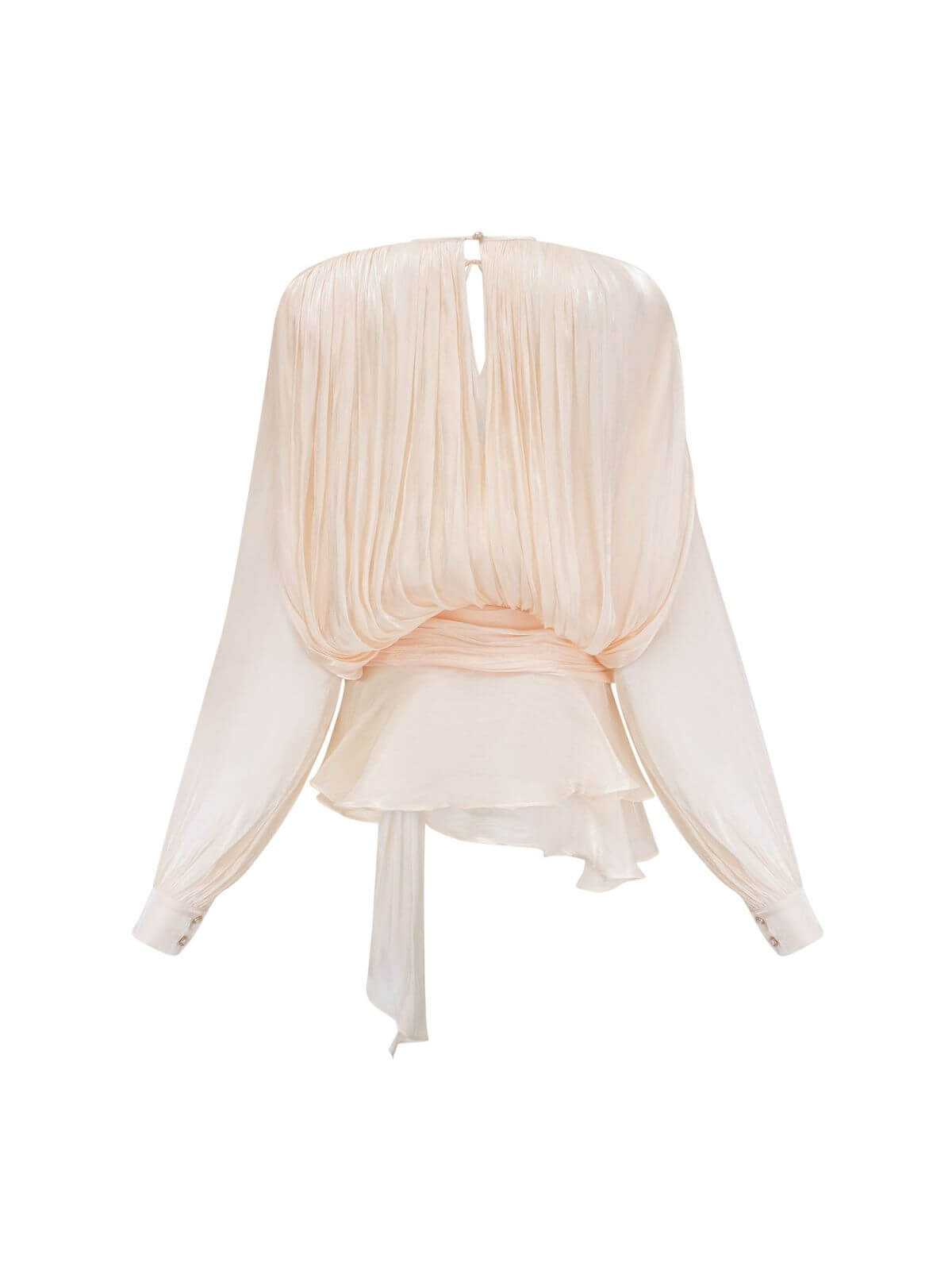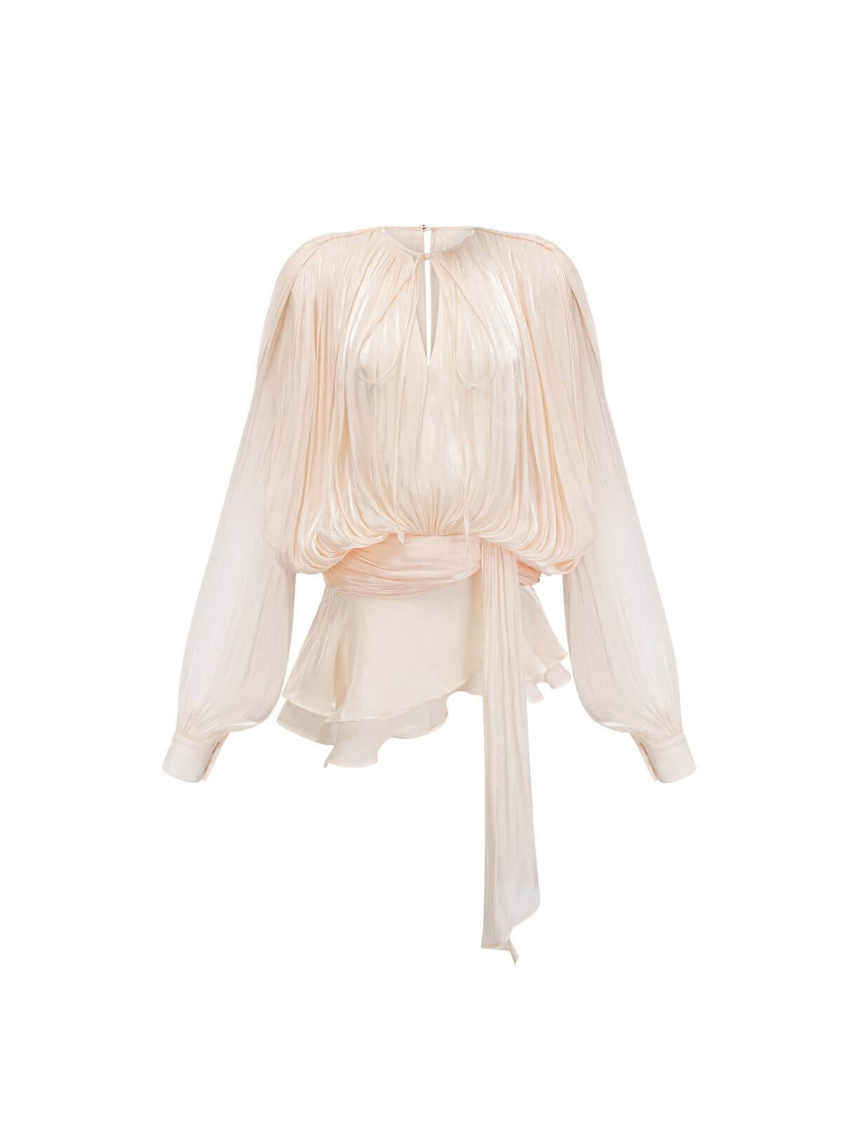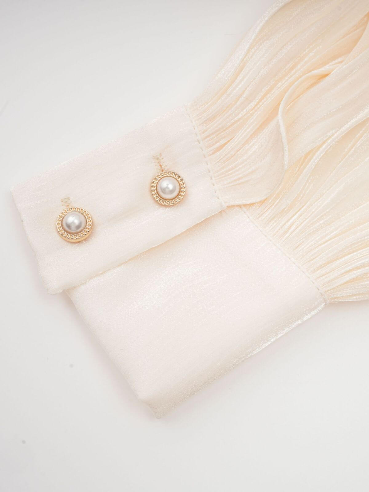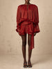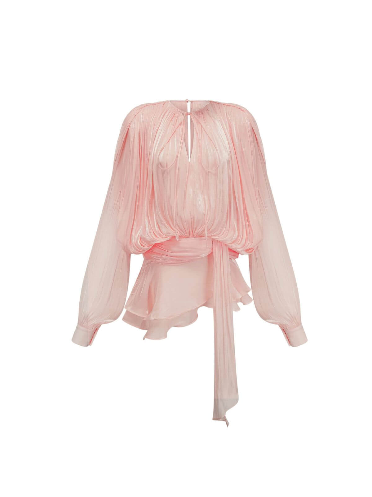A show-stopping pleated ruffled mini dress featuring a fully pleated body, ruffled hem and long buttoned-cuff sleeves for an elegant, fashion-forward silhouette. This glitter-detailed, twist-front design includes shoulder pads and soft draped detailing that creates a flattering blouson waist. Neck tie fastening adds a feminine touch while practical rear button and side zip fastenings ensure a secure fit. Mini length and flowing ruffles make it ideal for cocktail parties, evening events, and stylish date nights.