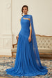 Faustine Blue Cape Design Ruched Maxi Dress
