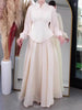 • Pleated bishop sleeves for graceful, flowing movement