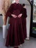 Peplum Waist Pleated Long Sleeve Maxi Dress, DES117