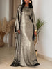 Radiate effortless glamour in this elegant metallic kaftan maxi dress. Designed with dramatic batwing sleeves and a fluid draped silhouette, it moves beautifully with every step. The shimmering fabric catches the light for a luxurious finish, making it perfect for evening occasions, formal events, or stylish resort wear.