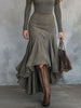 Retro Suede Irregular Midi Skirt Two-piece Set