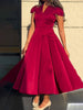 Elegant Pleated V-Neck Waisted A-Line Midi Dress