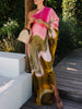 Elegant Satin Tie Dye Print One Shoulder Drape Vacation Maxi Dress
