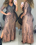 Ombre & Plants Print V-Neck Three Quarters Sleeve Side Slit Vacation Dress