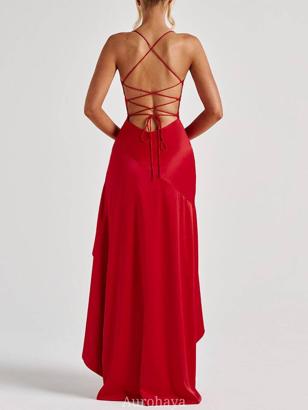 Designed for modern elegance, this satin spaghetti strap backless maxi dress is crafted from premium stretch satin fabric for a smooth, flattering fit. Featuring a twist cowl neckline and asymmetric pleats through the body, this maxi dress enhances curves while maintaining effortless flow. The cross-over adjustable straps lead to a lace-up open back, allowing for a customized, secure fit. Fully lined for comfort and structure, it finishes with an invisible zipper fastening for a seamless look.