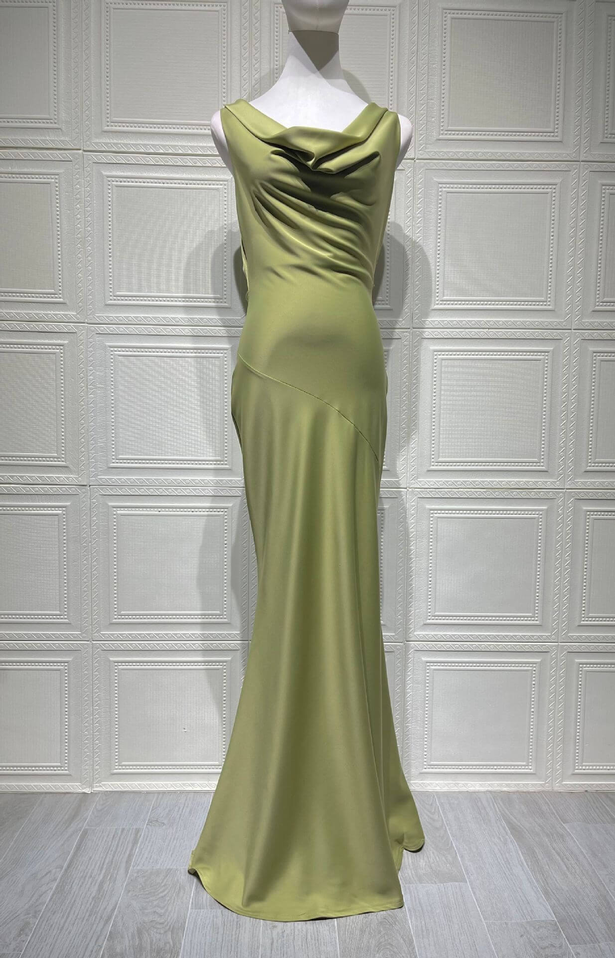Designed with a minimalist aesthetic, this cowl-neck evening dress pairs beautifully with heels and delicate accessories. The full-length cut offers a sophisticated finish, while the slip-style construction ensures comfort and ease of wear. With no zipper, the dress slips on smoothly for a seamless look.