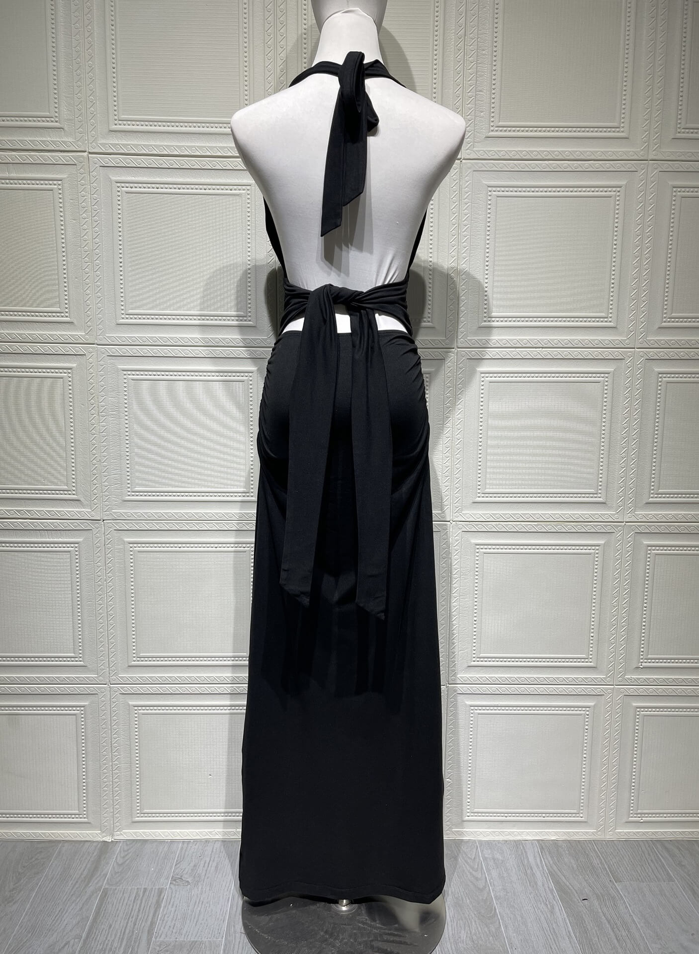 Made from premium fabric, this dress is perfect for formal events, cocktail parties, and upscale occasions. The long, flowing design adds a touch of drama, while the high slit adds a hint of allure. Whether you're attending a gala or a red-carpet event, the Neck Deep V-Strap Backless Slim-Fit Split Dress will have all eyes on you.