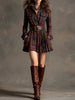 Vintage Lapel Red and Brown Plaid Mini Dress